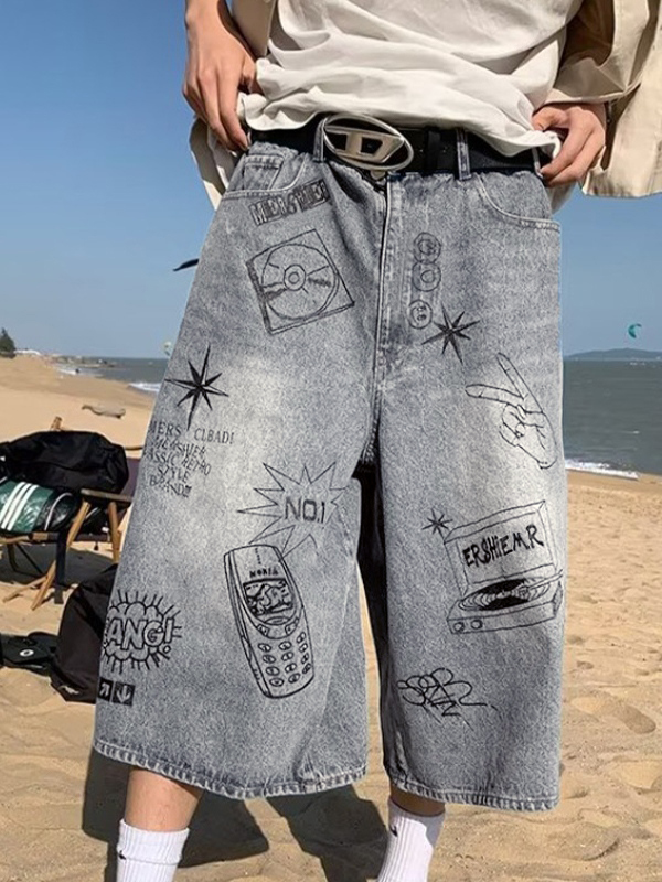 Lose Herrenjeans mit Skelettmuster und Nahtdetail