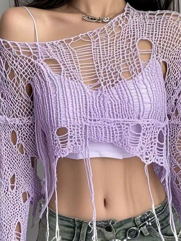 Einfarbige Langarm-Strickwaren