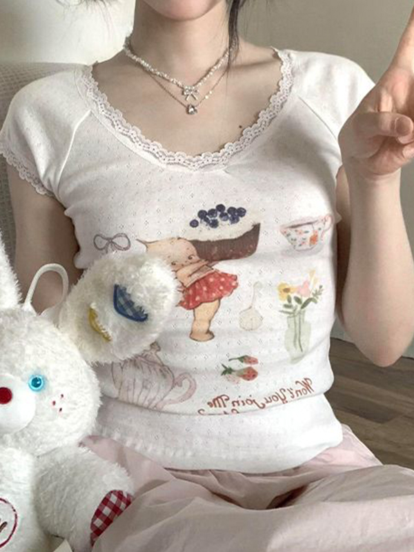 Niedlicher Print Kurzarm-Strick