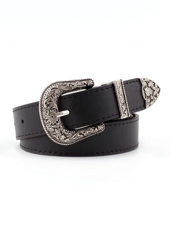 Gürtel mit gravierter, metallverzierter Schnalle