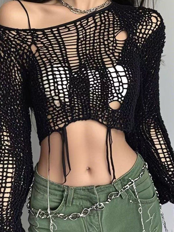 Einfarbige, langärmlige Strickwaren mit Kapuze
