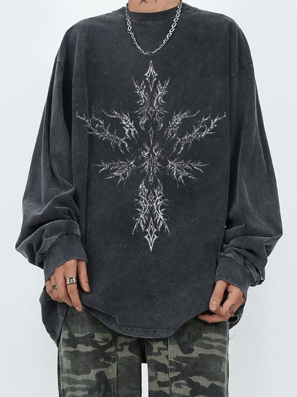 Gewaschenes Oversize-Langarm-T-Shirt für Herren