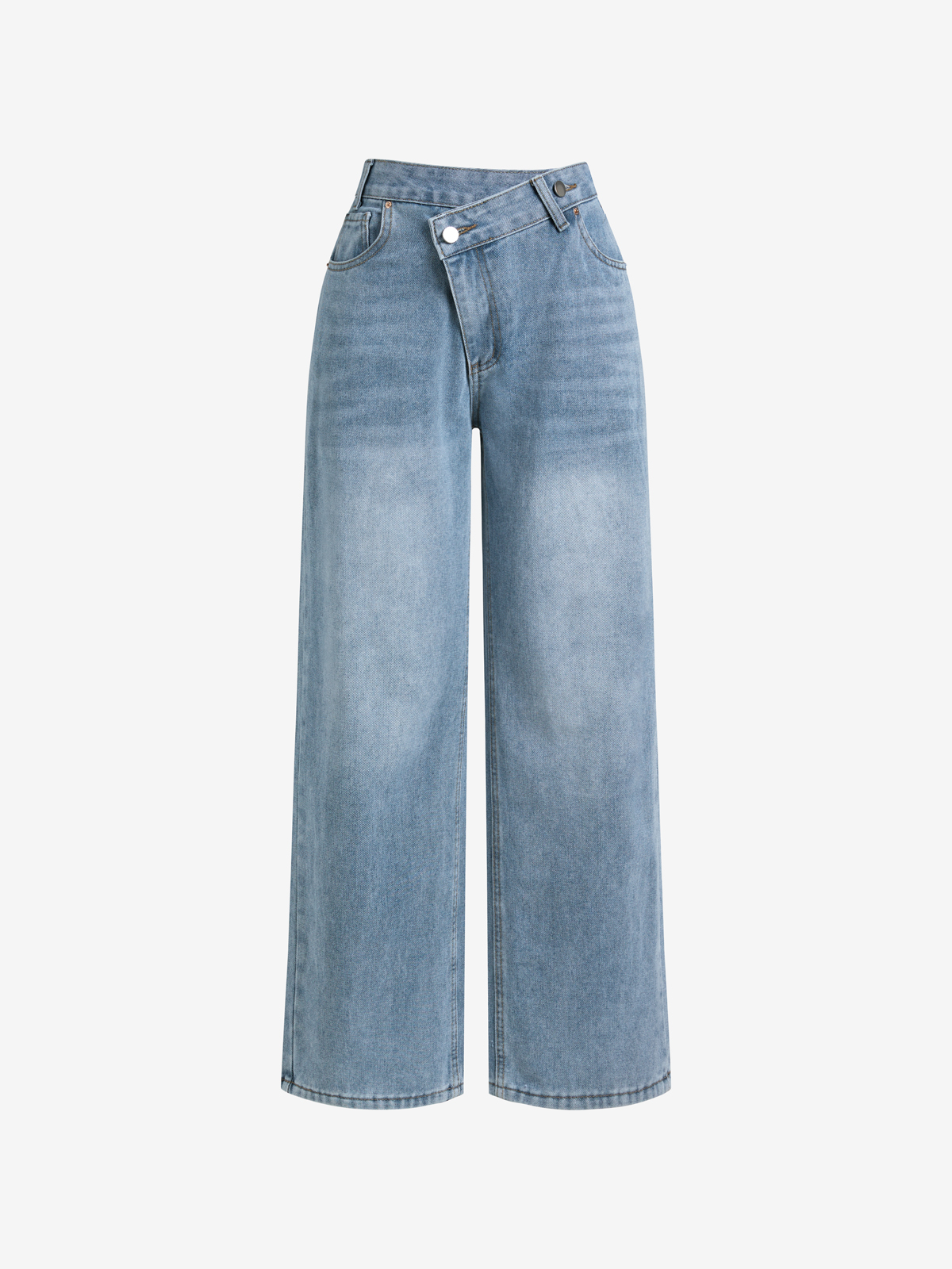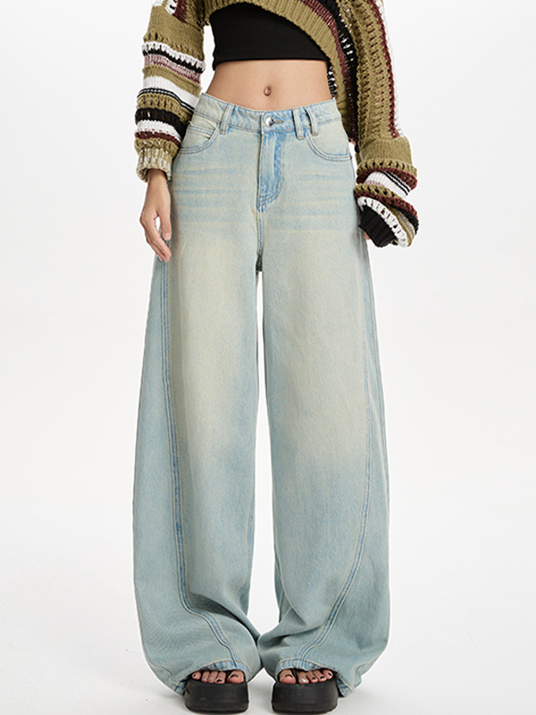 Vintage Blaue Boyfriendjeans mit weitem Bein