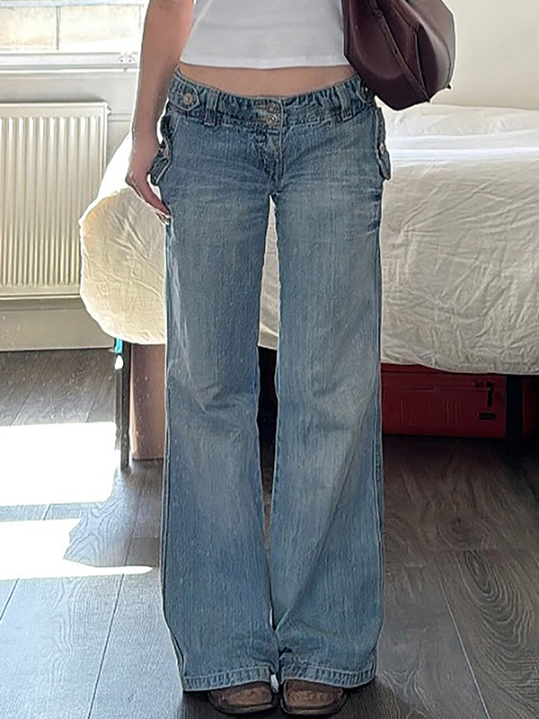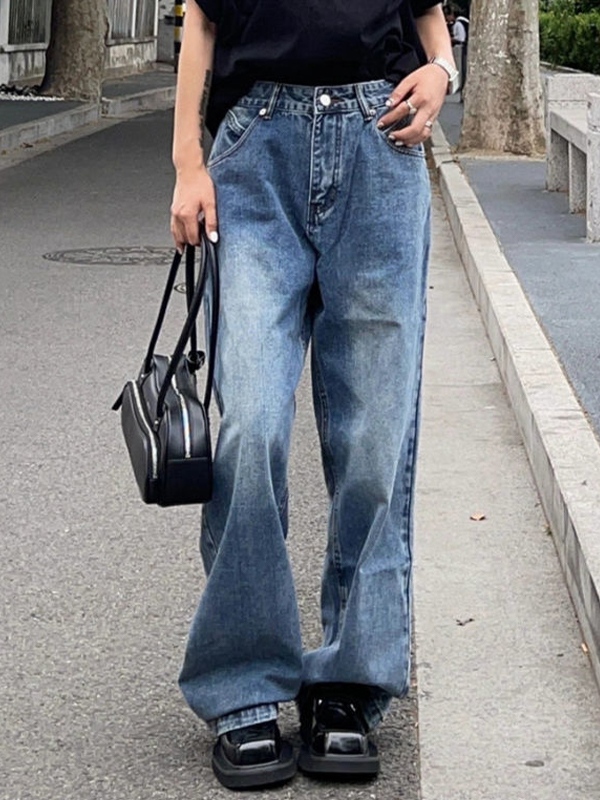Vintage Blaue Boyfriendjeans mit weitem Bein