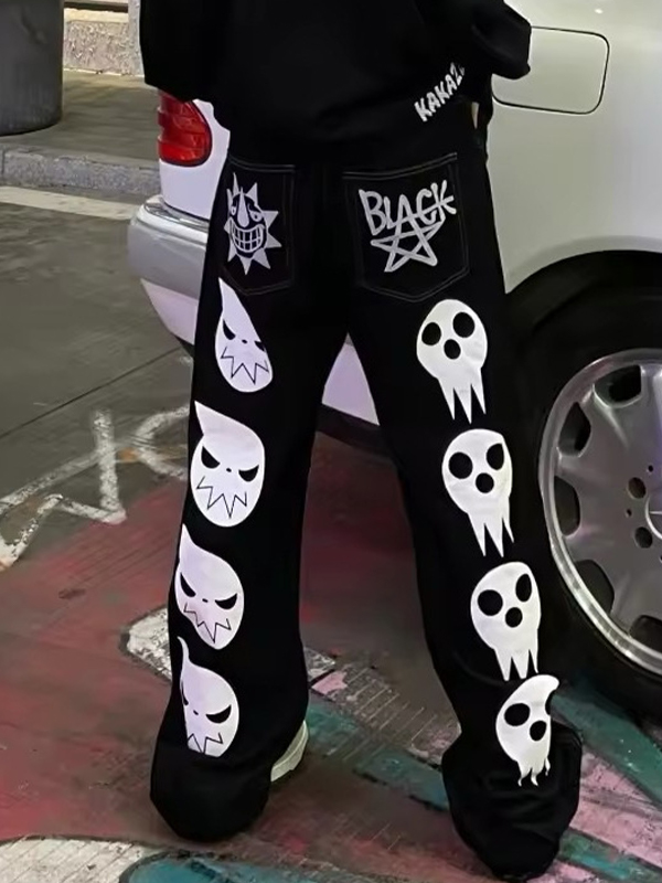 Lockere Jeans für Herren mit Totenkopf-Print