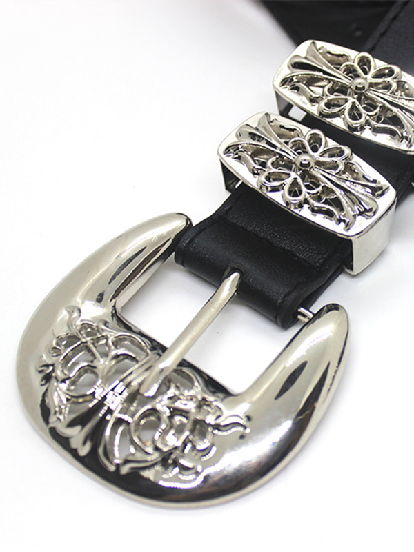 1 Gürtel mit hohler, geschnitzter Kreuzschnalle