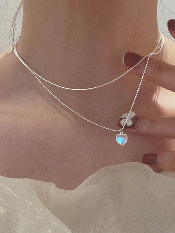 Doppellagige Halskette mit Farbverlauf und Herzanhänger