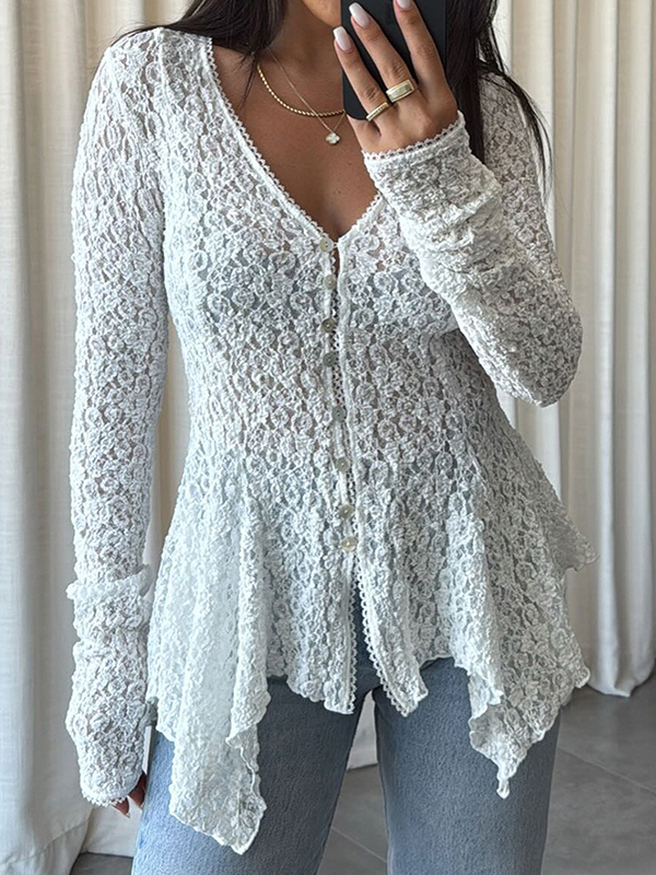 Schreibe die erste Bewertung für „Einfarbige Strickjacke mit Spitzen-Patchwork“