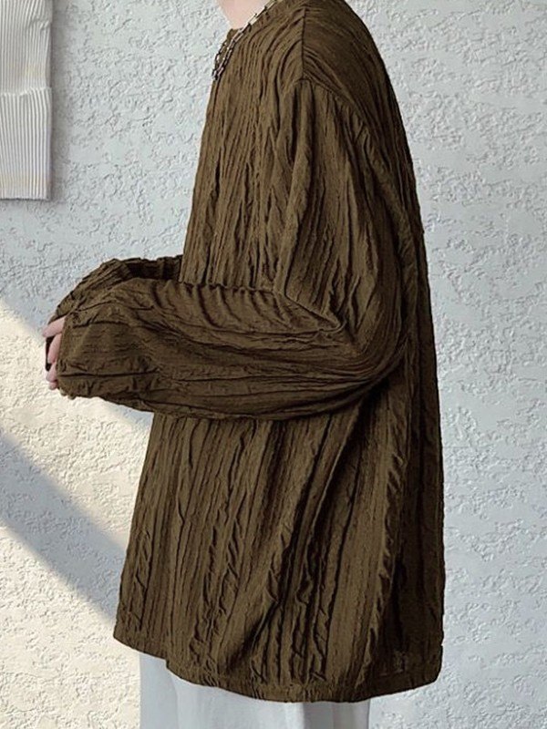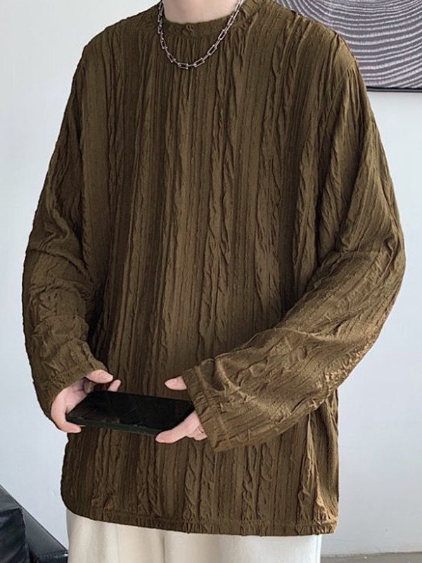 Beschreibung: Einige vielseitige Langarm-T-Shirts für grundlegende Innenausstattungen aktualisiert. Dieses T-Shirt für Herren hat eine taillierte Silhouette und ein gerafftes Texturdesign am ganzen Körper.