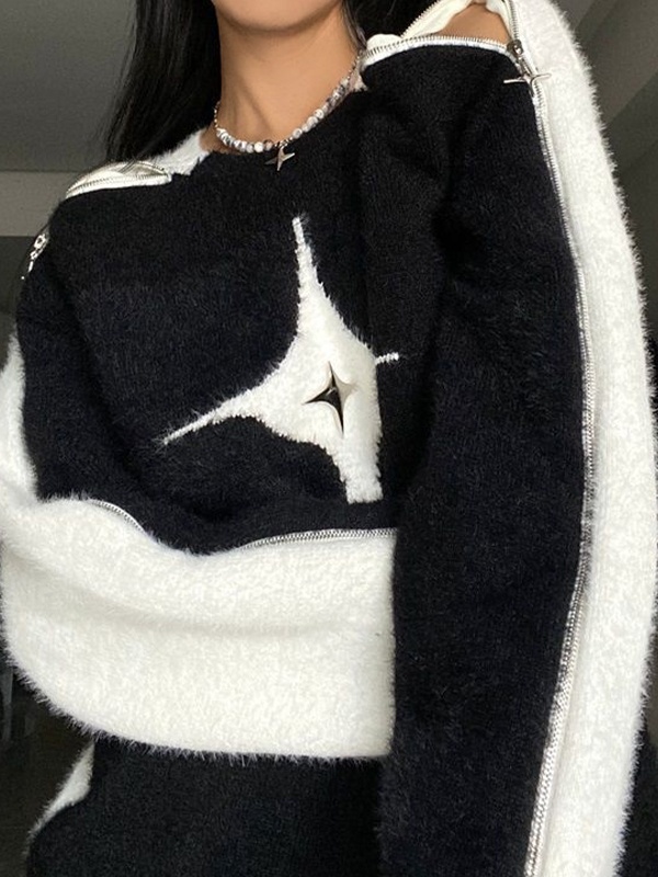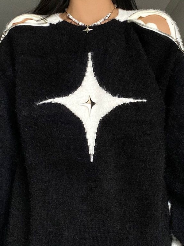 Reißverschluss-Design an der Schulter: Das Reißverschluss-Design an der Schulter dient nicht nur der Ästhetik, sondern verleiht dem Pullover auch eine hippe Pop-Atmosphäre. Dieses interessante Merkmal macht das Hemd modischer und ausgefallener.