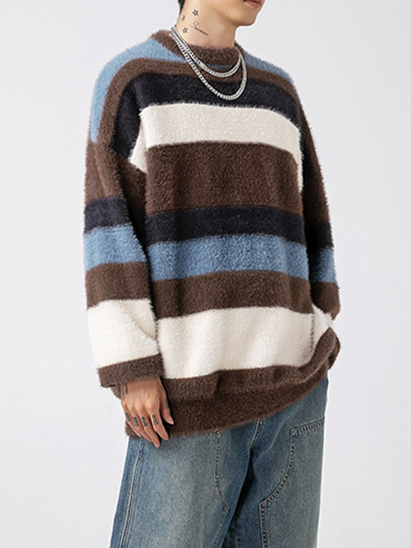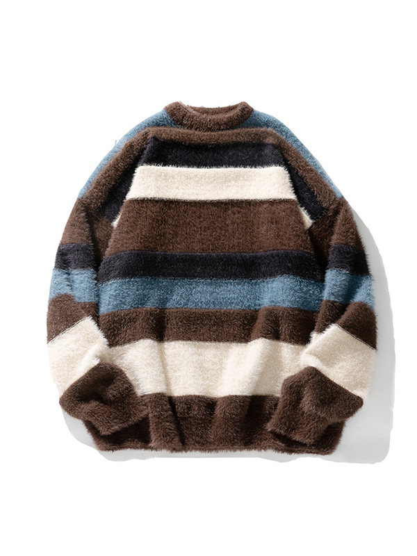 Pullover mit Rundhalsausschnitt und Kontraststreifen aus Nerzimitat