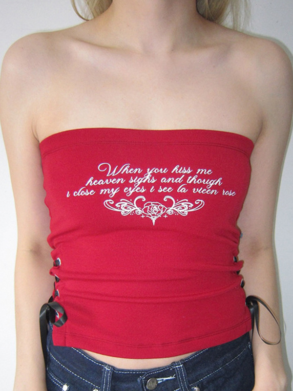 Trägerloses Tanktop mit Blumenmuster und seitlicher Schnürung