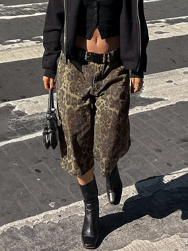 Trendige Jeansshorts im Streetstyle mit Leopardenmuster