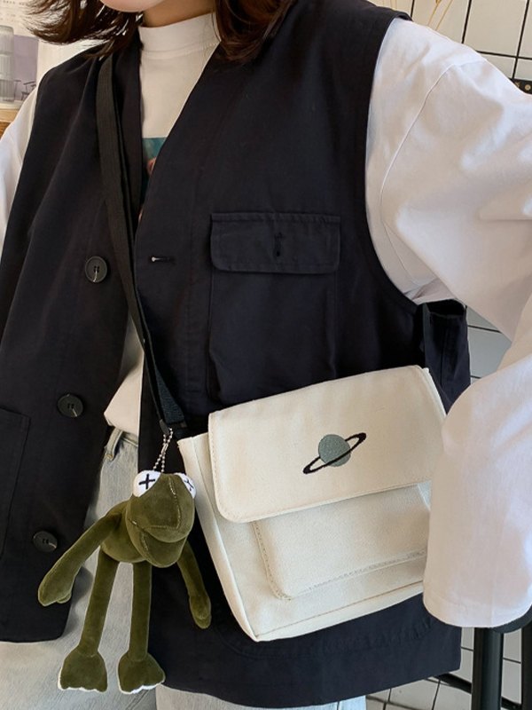 Umhängetasche aus Canvas mit Anhänger im Design Planet