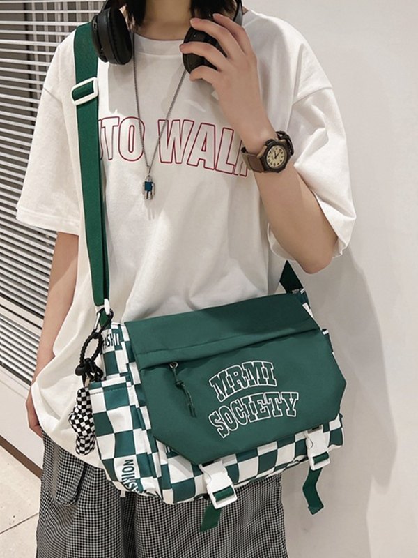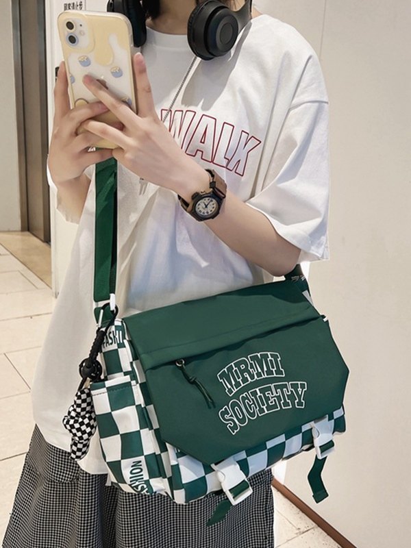 Details: Es hat einen abnehmbaren Cartoon-Anhänger, einen verstellbaren Schultergurt, eine Logografik auf der Vorderseite, funktionale Taschen, doppelte Schnallenriemen und einen Reißverschluss.