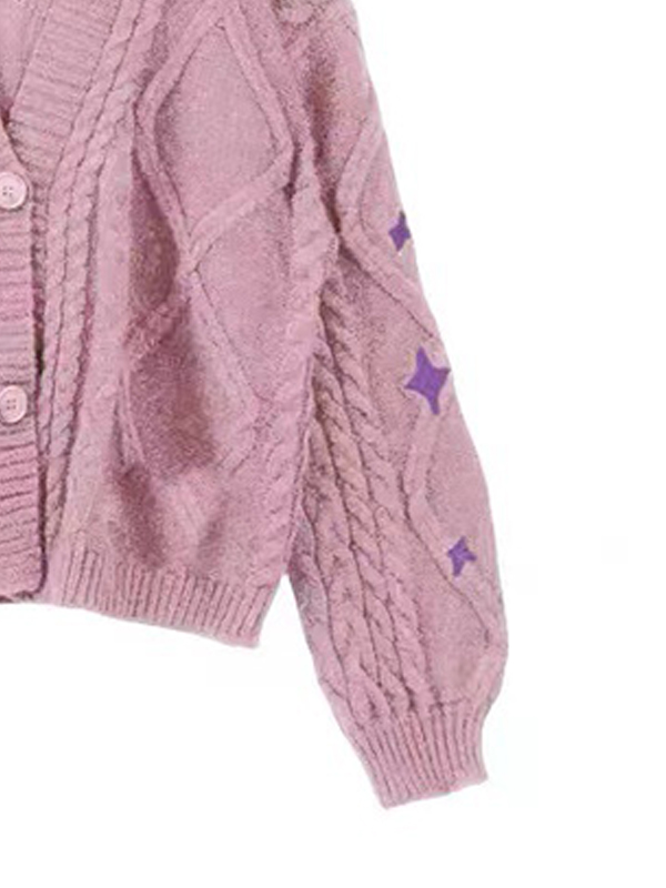 Zopfstrick-Cardigan mit V-Ausschnitt und Stern-Stickerei