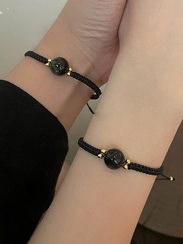 Geflochtenes Obsidian-Spleißarmband im Paar-Stil
