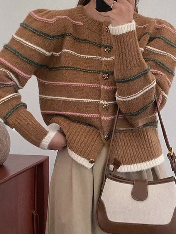 Kontrastfarben gestreifter Kurzstrick-Cardigan