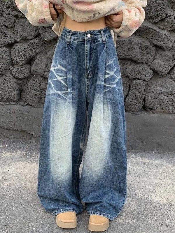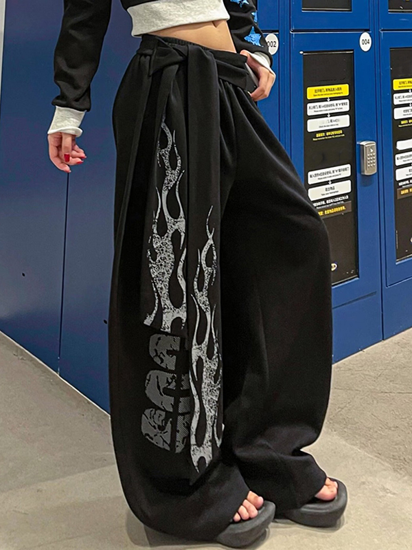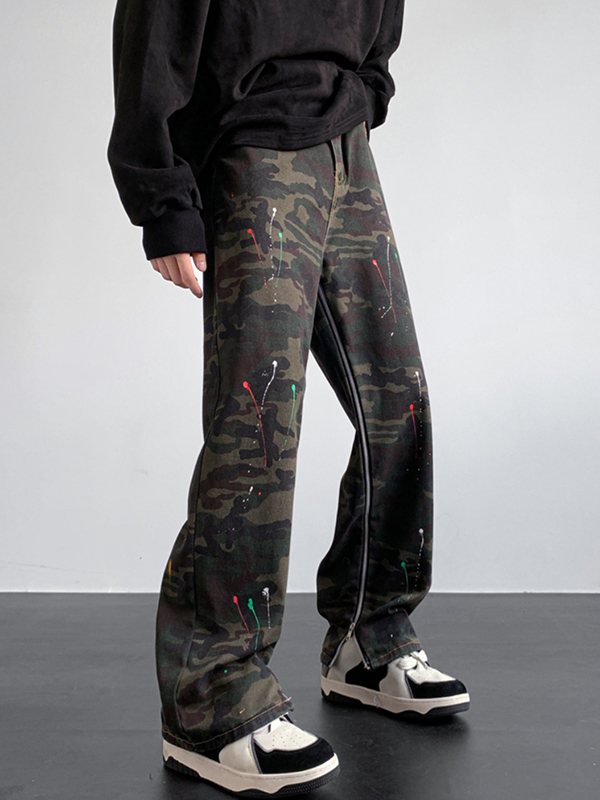 Bedruckte Hose mit weitem Bein im Street-Style