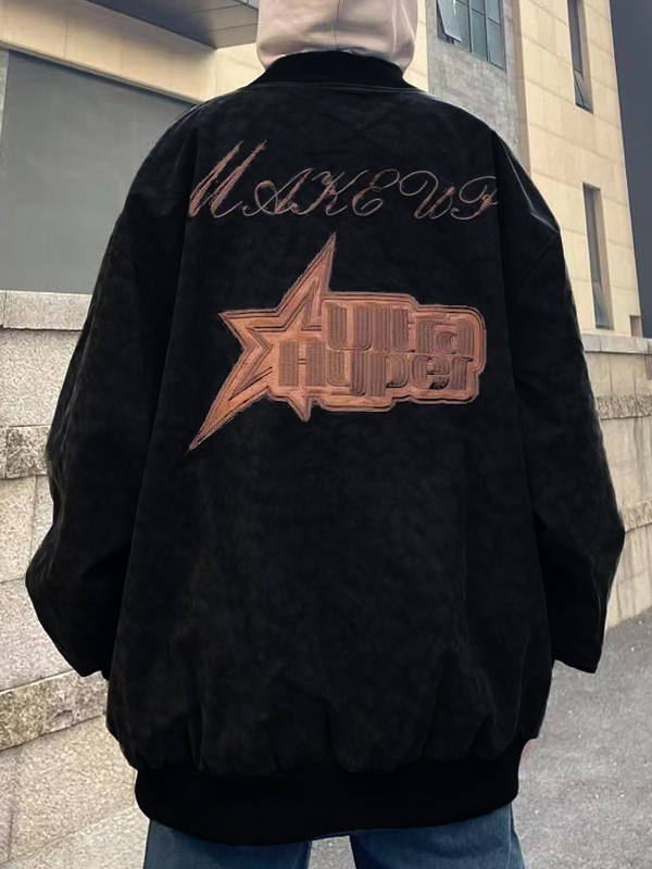 Herren-Hip-Pop-Jacke aus Wildleder mit Stickerei