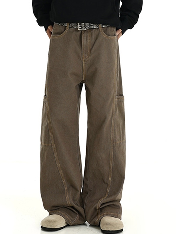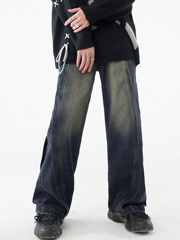 Verwaschene, lockere Patchwork-Jeans für Herren