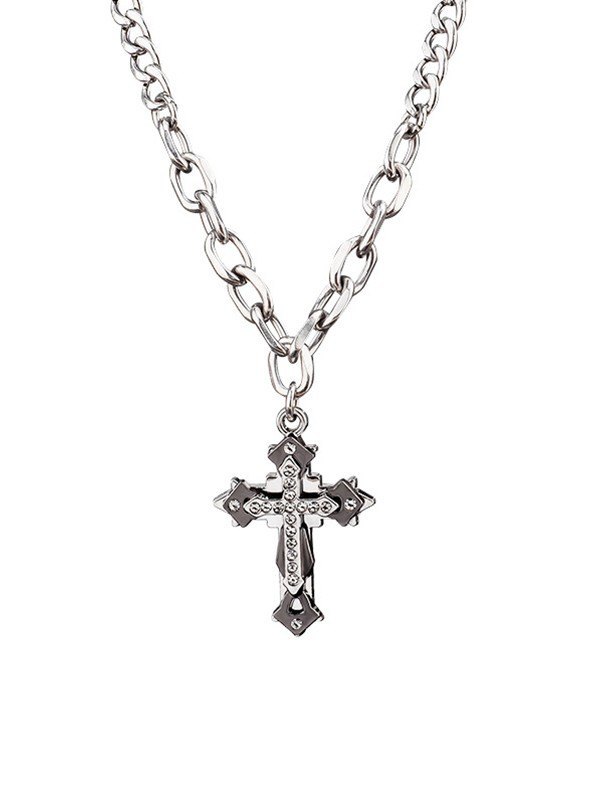 Herren Strass Kreuz Anhänger Halskette