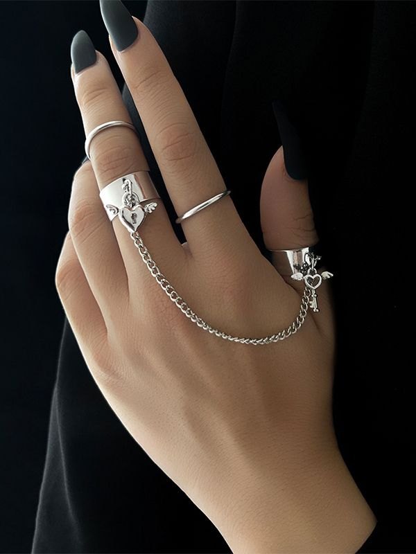 Manschettenring-Set mit Herzschlüssel-Anhänger