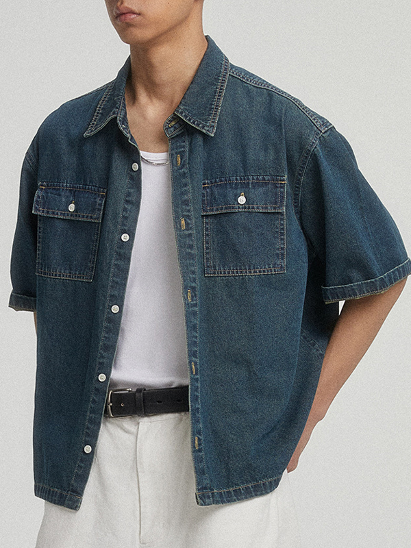 Retro-Arbeitskleidung aus Denim mit kurzen Ärmeln