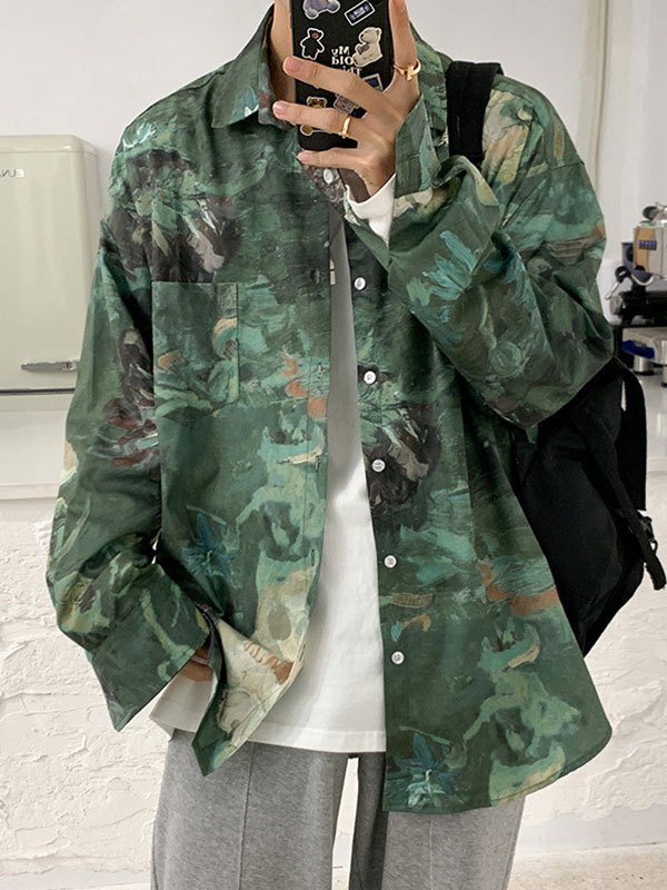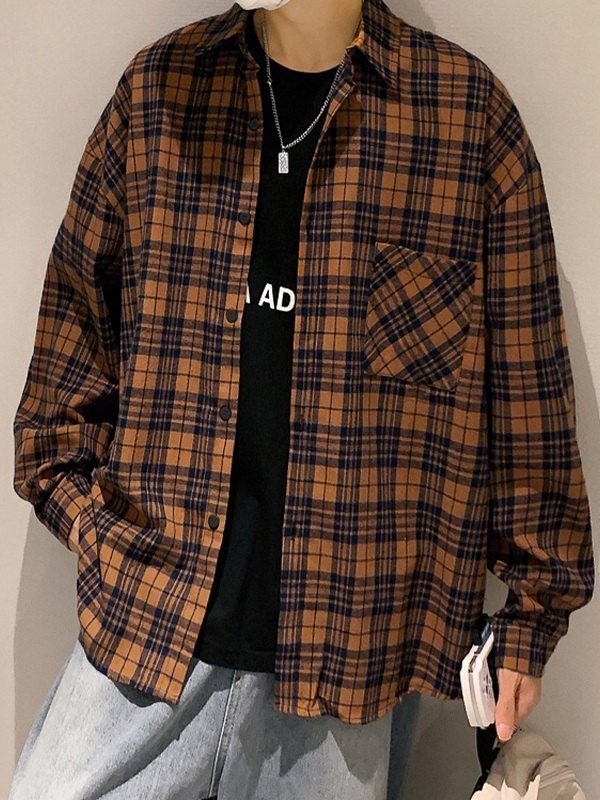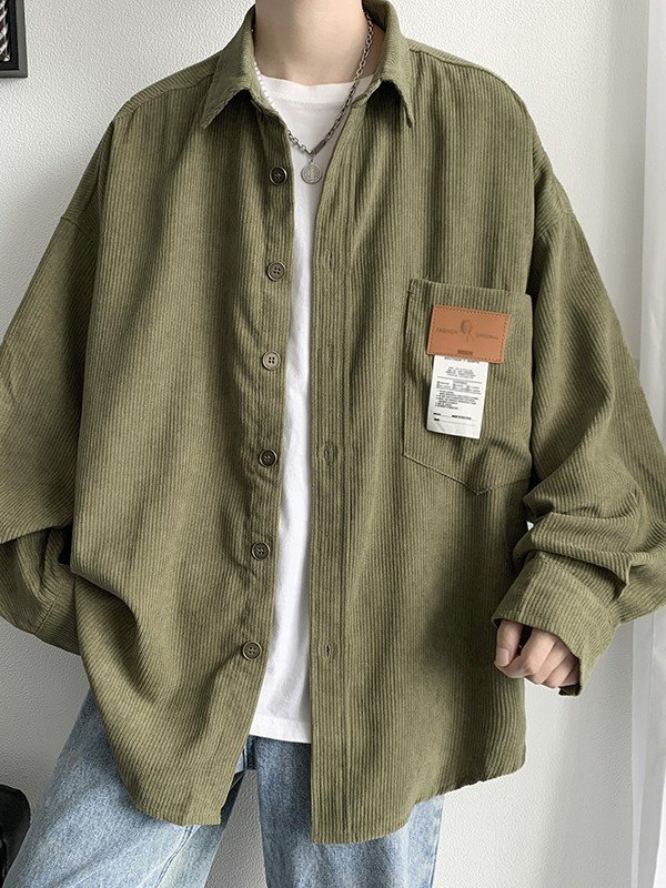 Einfaches Cord-Langarmhemd mit Taschen für Herren