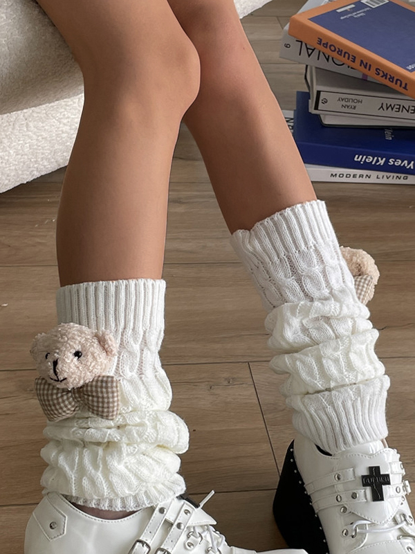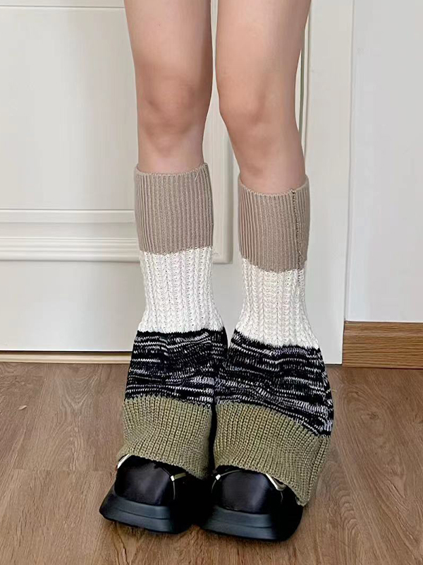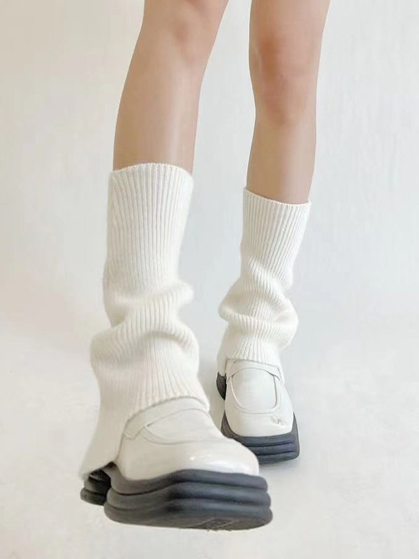 Warme, einfarbige, gerippte Strick-Beinwärmer