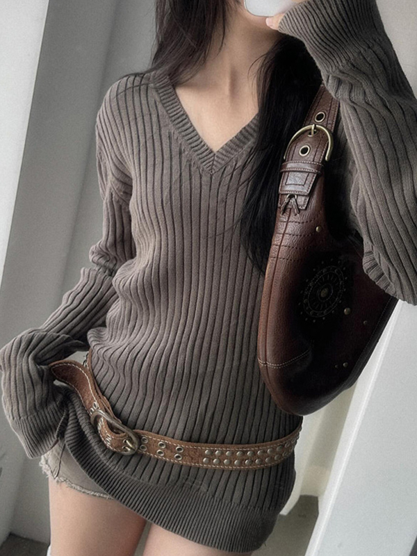 Lässiger schulterfreier Strick mit langen Ärmeln