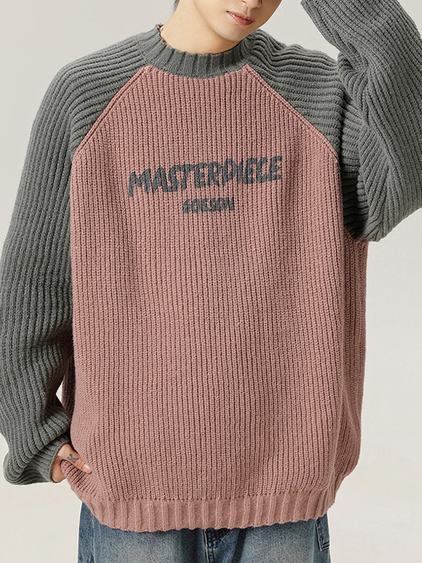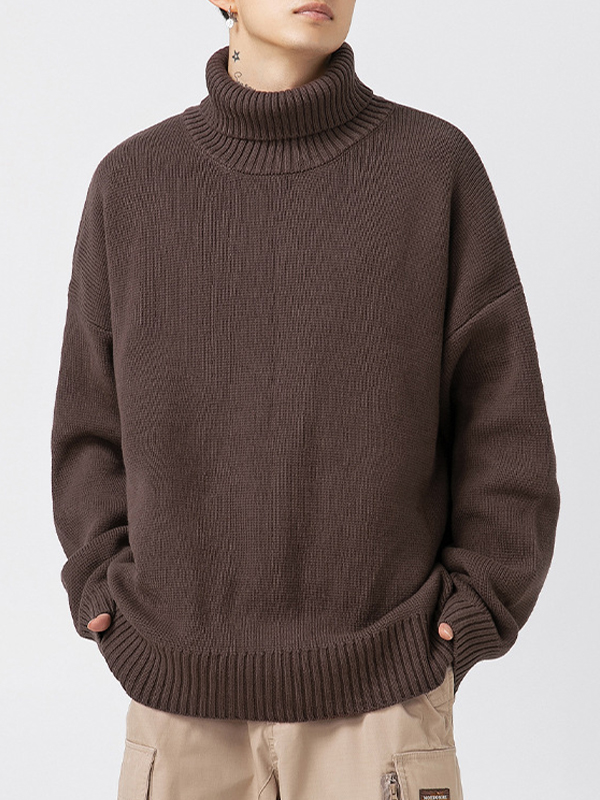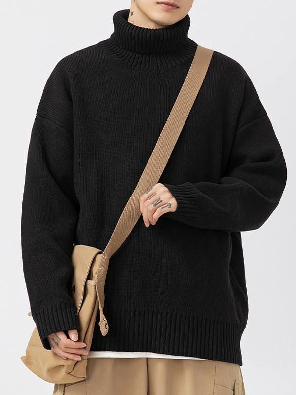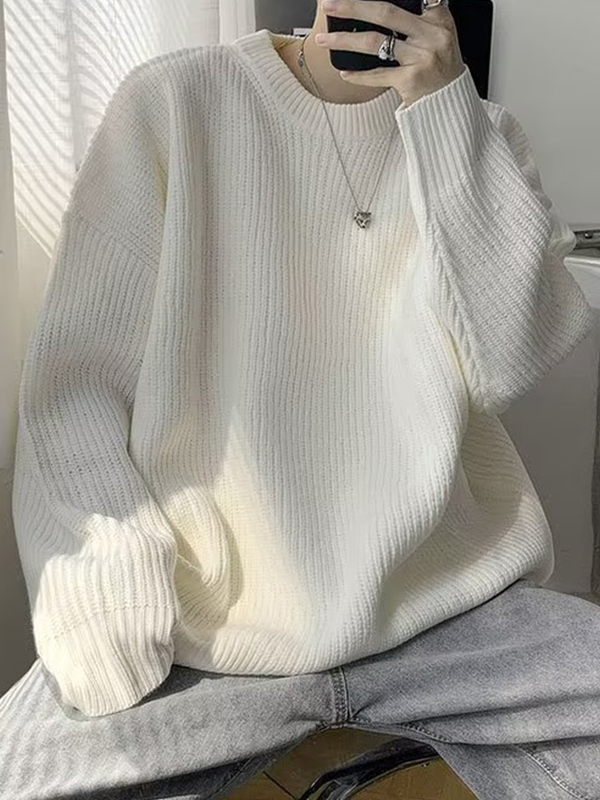 Einfarbiger, lockerer Strickpullover für Herren