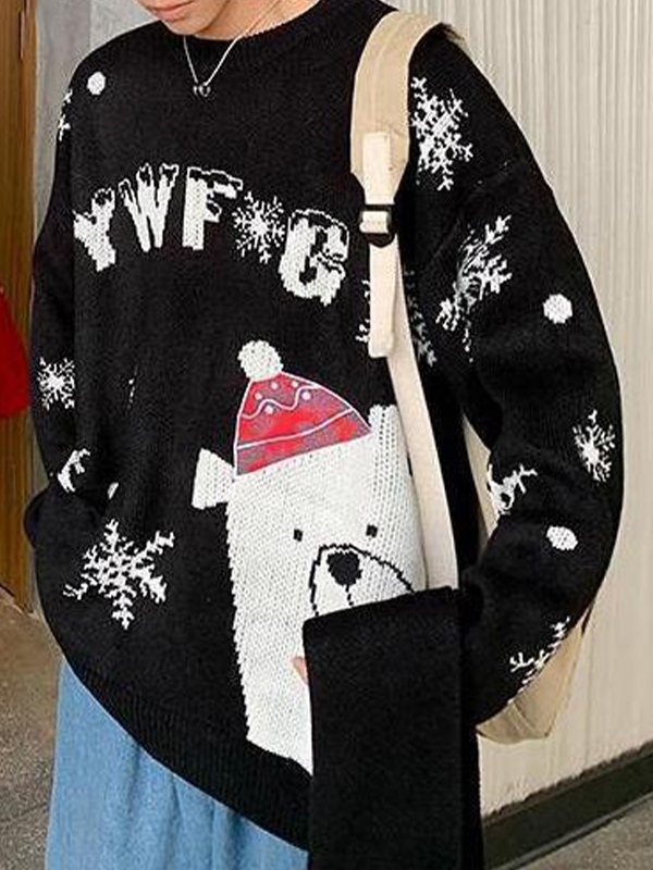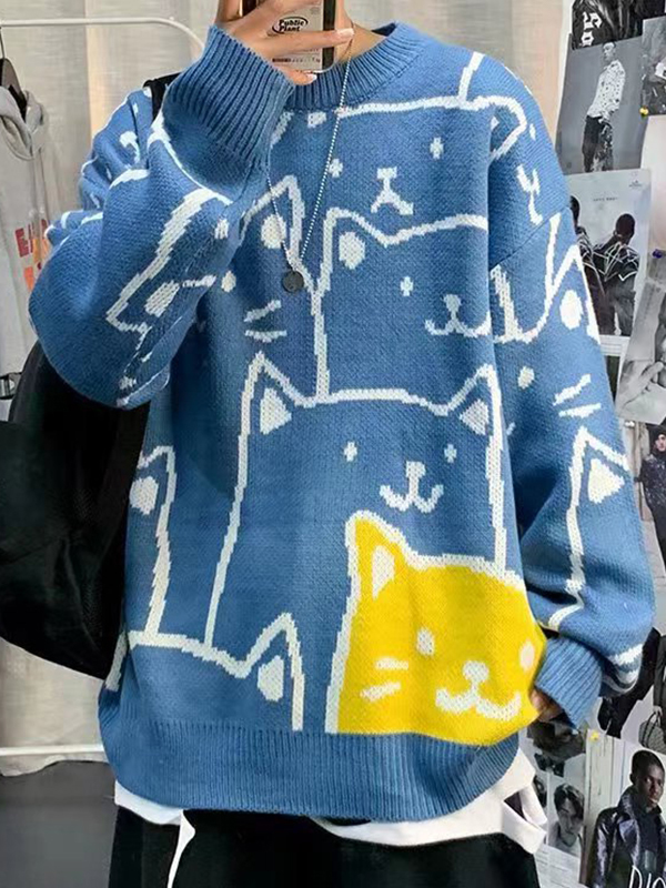 Herren-Pullover mit V-Ausschnitt und Cartoon-Print