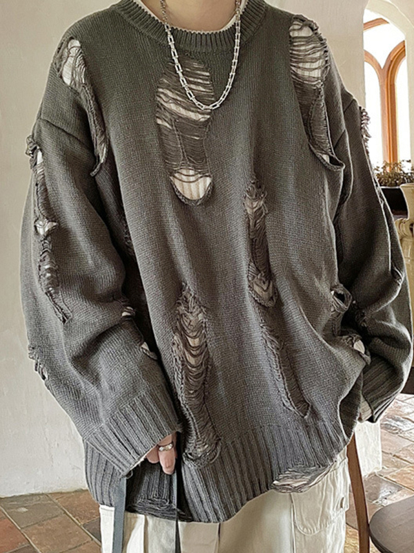 Zerrissener Herrenpullover mit Vintage-Kreuzmuster