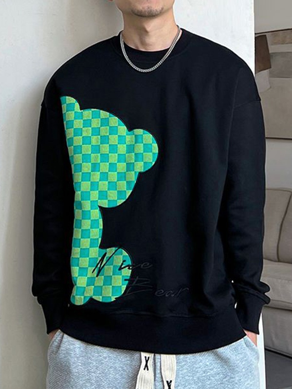 Herren-Sweatshirt mit kariertem Bären-Print