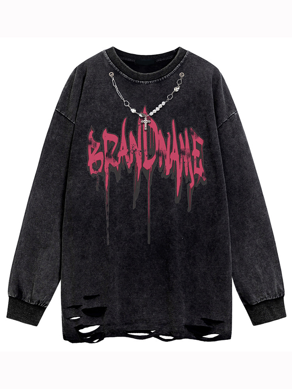 Langarm-T-Shirt mit V-Ausschnitt und Vintage-Print