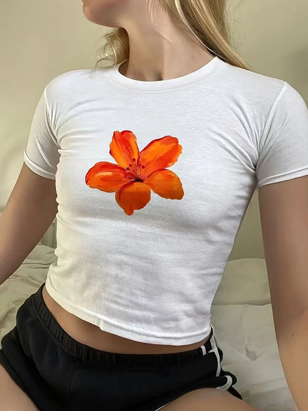 Kurzarm-T-Shirt mit Street-Blumen-Print