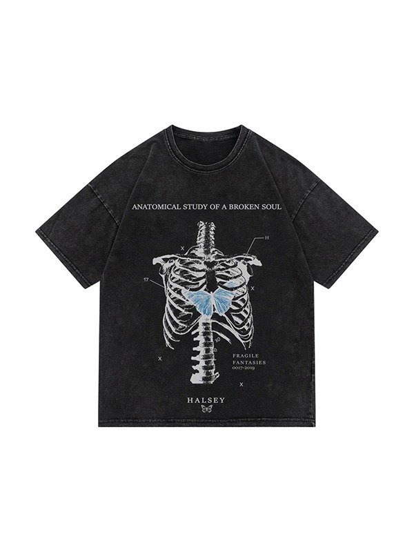 Gewaschenes Totenkopf-Grafik-T-Shirt für Herren