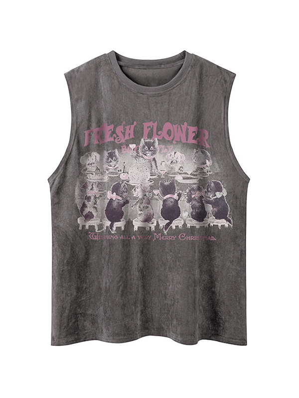 Herren-Weste mit Vintage-Waschung, schwarzer Grafik