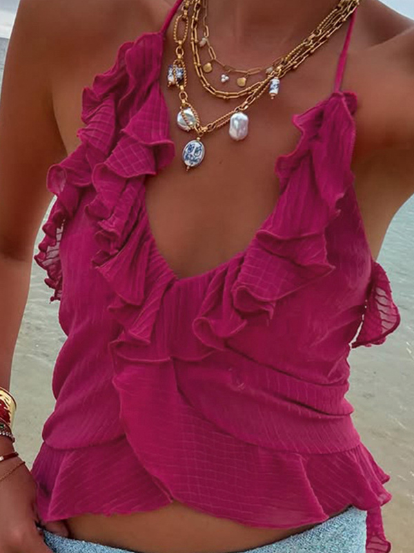 Ärmelloses, sexy Neckholder-Top mit V-Ausschnitt