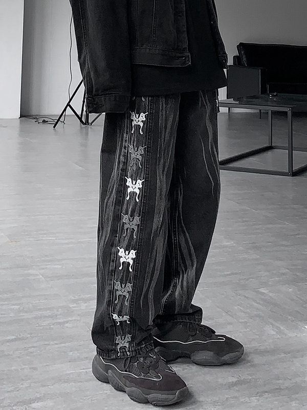 Verwaschene, lockere Patchwork-Jeans für Herren