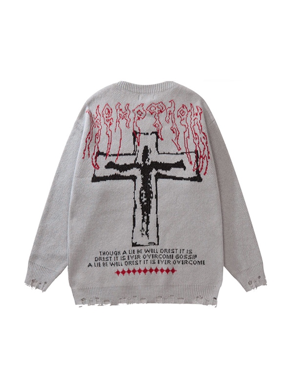 Herren-Pullover mit Fransen, wendbar, locker
