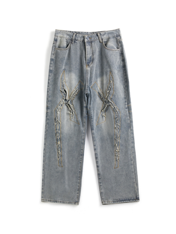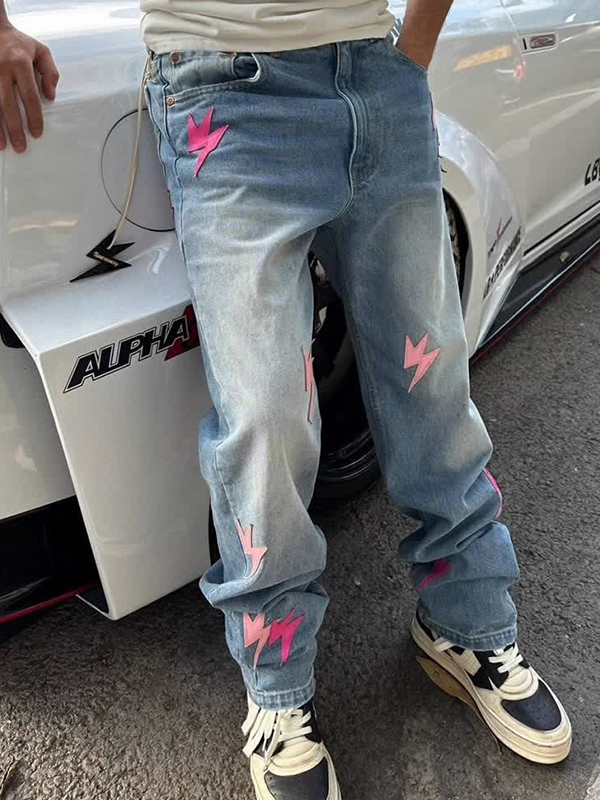 Lockere Jeans mit Patch-Leder-Lightning für Herren