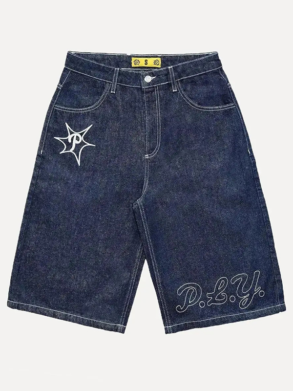 Herren-Jeansshorts mit Street-Letter-Print